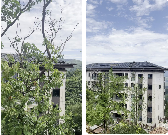 生态禀赋:1260米海拔,3万亩林海的天然氧吧 项目地处乐村国有林海中心区,海拔高度1260米至1320米,夏季年均气温仅21℃,是国际公认的“黄金康养海拔”。这里坐拥3万亩原始森林,每立方米空气中负氧离子含量高达20000个,远超城市数十倍,堪称“天然空气净化器”。喀斯特地貌孕育的三大高山湖泊,近10万㎡水域资源与森林景观相映成趣,形成“湖光山色共长天”的稀缺生态画卷,让业主的居所真正成为“森林中的私宅”。